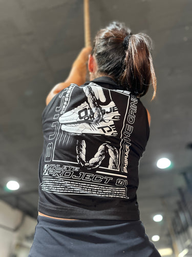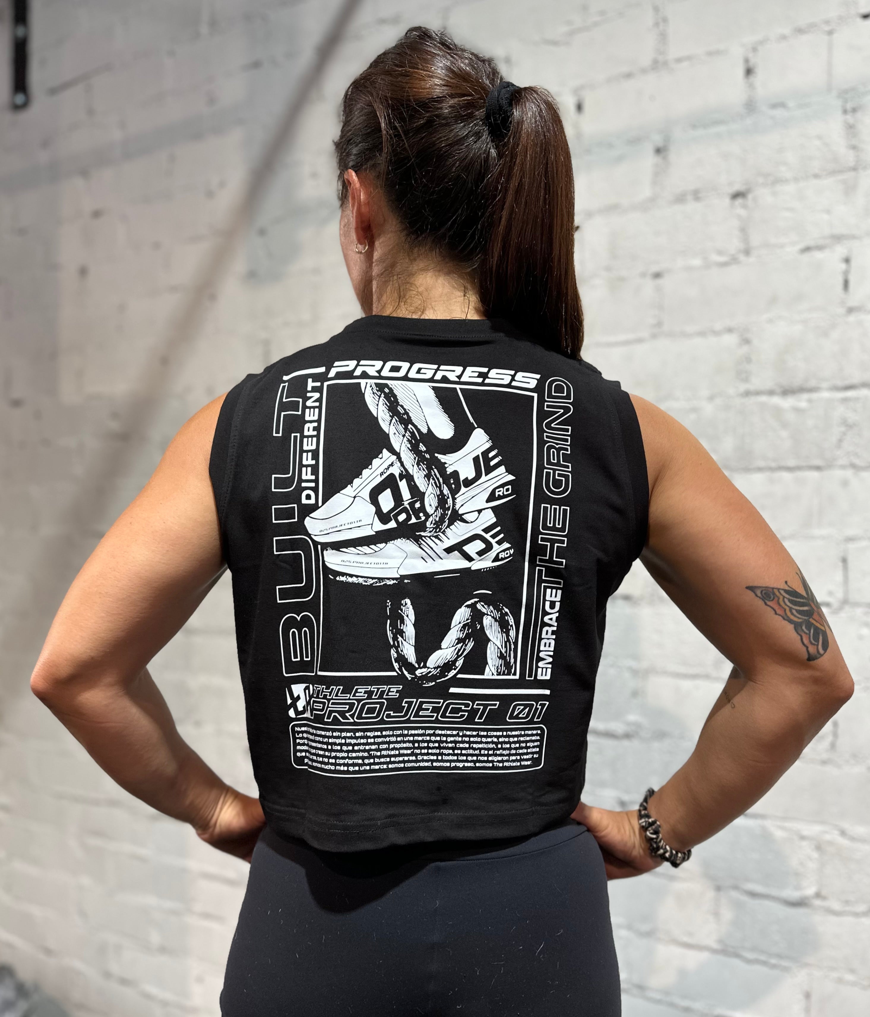 La prenda con la que empezó todo. THE ROPE fué nuestro primer diseño unisex: ahora en crop tank sin mangas para mujer, con corte relajado, que combina estilo y funcionalidad a la perfección.